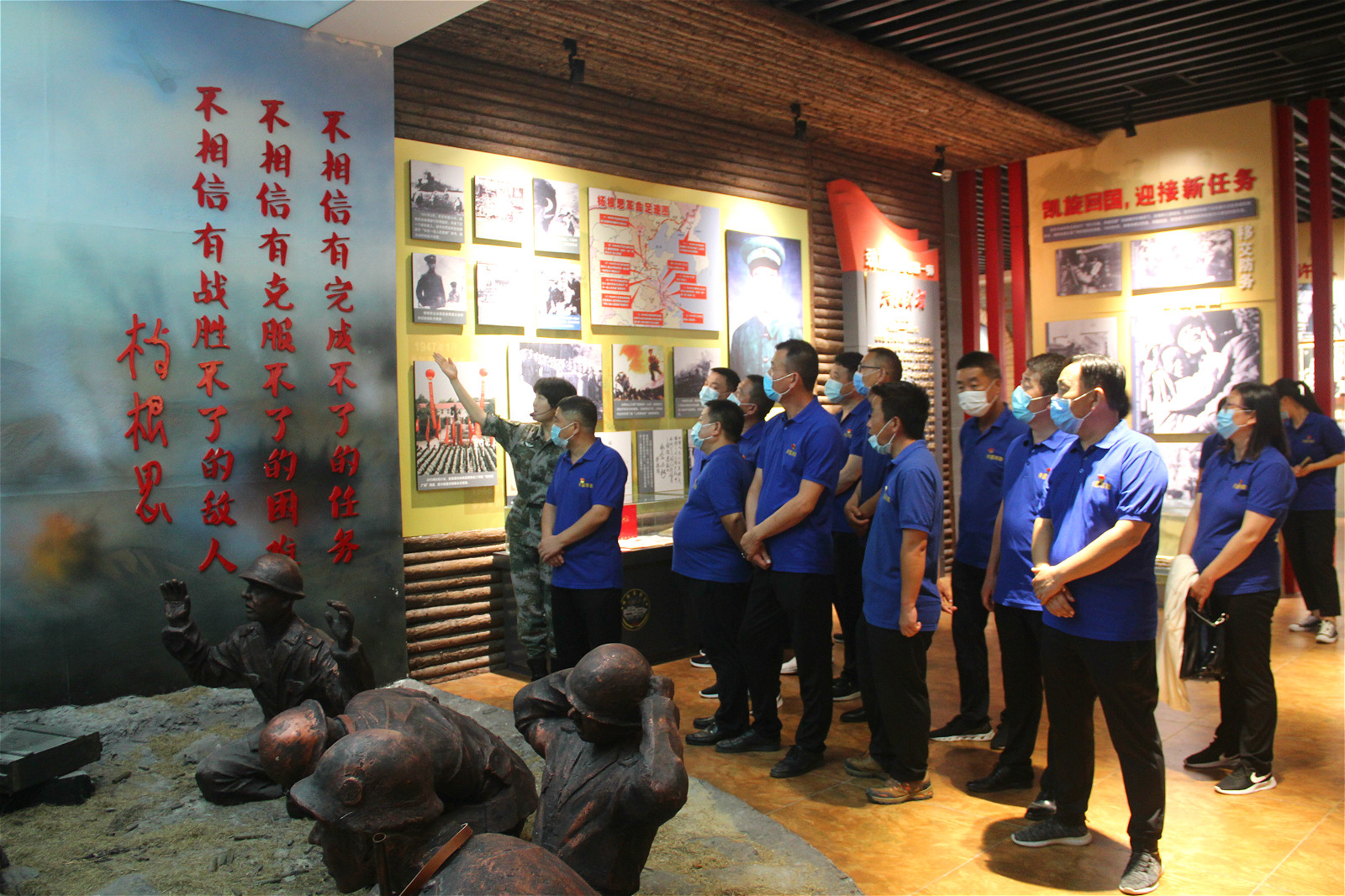 7月8日下午,集團(tuán)公司黨委委員、董事長、總經(jīng)理陳朝輝同志帶隊(duì),集團(tuán)公司黨委委員、副總經(jīng)理高曉峰同志,集團(tuán)公司黨委委員、副總經(jīng)理關(guān)福來同志,市政一支部、二支部、三支部和護(hù)城河管理辦公室支部等一行來到五十八旅進(jìn)行實(shí)地參觀學(xué)習(xí)。旅史館內(nèi),大家認(rèn)真聆聽講解員的精彩講解,仔細(xì)觀看館內(nèi)的陳列浮雕、實(shí)物圖片和珍貴史料,深刻感懷老一輩革命英烈艱苦奮斗、不畏犧牲、無私奉獻(xiàn)的精神。