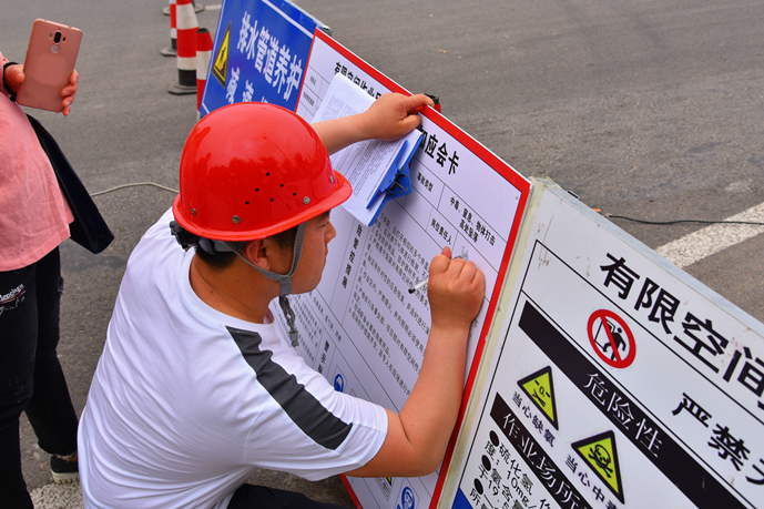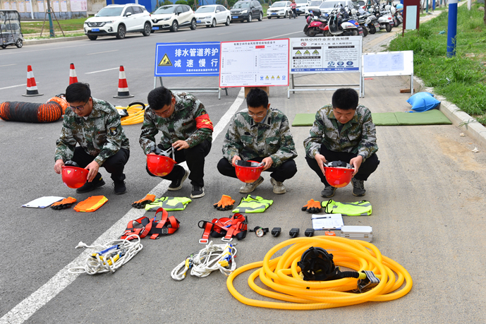“各參演人員就位,演練開始!”隨著演練指揮長(zhǎng)的一聲令下,演練正式開始。作業(yè)區(qū)域內(nèi),作業(yè)人員將施工標(biāo)志牌、導(dǎo)向標(biāo)、爆閃燈等警示標(biāo)志放在適當(dāng)顯眼的位置,按照地下空間作業(yè)安全操作流程的要求,相互配合完成各項(xiàng)作業(yè)任務(wù)。演練模擬了作業(yè)人員下井作業(yè)時(shí)受有害氣體侵?jǐn)_的突發(fā)情況。期間,地面同伴發(fā)現(xiàn)地下作業(yè)人員發(fā)生危險(xiǎn),立即向指揮長(zhǎng)匯報(bào)情況,指揮長(zhǎng)收到匯報(bào)后迅速啟動(dòng)《地下有限空間作業(yè)應(yīng)急救援預(yù)案》,并派出救援組攜帶救援物資緊急趕往現(xiàn)場(chǎng)救援。